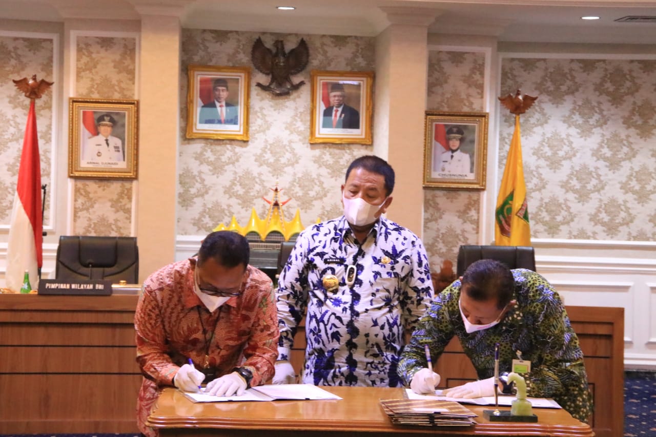 Bandar Lampung — Gubernur Arinal Djunaidi menghadiri acara Penandatanganan Nota Kesepahaman antara Pemerintah Provinsi Lampung dengan PT. Pertamina (Persero) Marketing Operation Region (MOR) II dan PT. Bank BRI (Persero) Tbk. tentang Pelaksanaan Program Pengendalian Penyaluran Bahan Bakar Minyak Jenis Bahan Bakar Minyak Tertentu/Solar Bersubsidi Tepat Sasaran Dengan QR Code Full Card Di Wilayah Provinsi Lampung, di Ruang Rapat Utama, Jumat (20/11).
