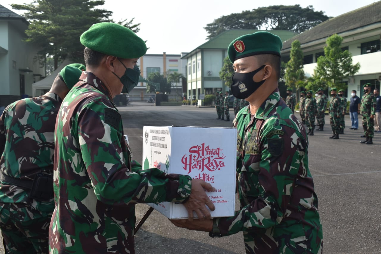 Bandar Lampung, – Komandan Korem 043/Gatam Brigjen TNI Drajad Brima Yoga S.I.P.,M.H memberikan bingkisan lebaran yang dilakukan secara simbolis kepada Prajurit dan PNS Usai melaksanakan apel pagi bertepatan dilapakan Makorem 043/Gatam. (06/05/2021).