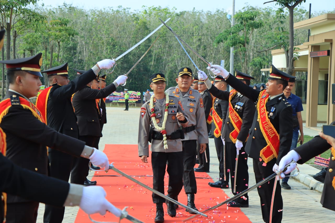 Suasana haru mulai terasa saat AKBP Sunhot P. Silalahi, S.I.K., M.M dan Istri memasuki gerbang pora, yang diiringi oleh Kapolres Tulang Bawang Barat yang baru. Mantan orang nomor satu di Polres Tulang Bawang Barat ini beserta istri, tampak haru dan menahan air mata saat akan berpisah dengan seluruh anggota Polres Tulang Bawang Barat.