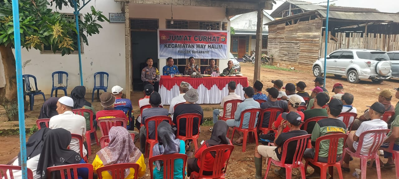 a. Saya ucapkan terima kasih kepada bapak dan ibu, tujuan kami dari Polsek Sukarame mengadakan Jumat curhat sebagai sarana silaturahmi dan ini program pimpinan Polri dalam mendengar permasalahan dan aspirasi masyarakat yang ada kaitannya dengan pelayan dan tugas pokok polri khususnya Polsek