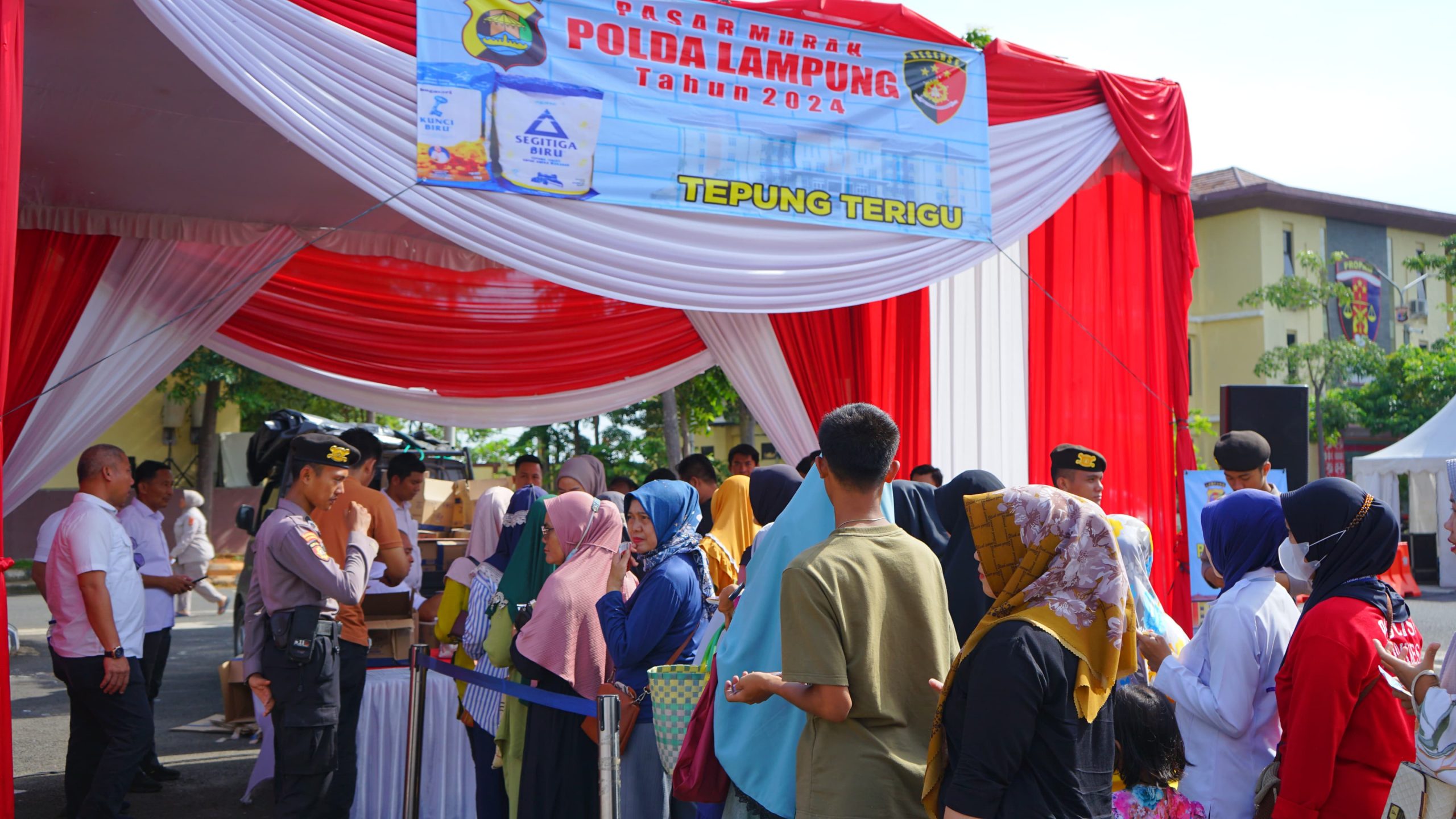 Bandar Lampung – Pasar Murah Polda Lampung berhasil diserbu ratusan masyarakat, Kamis (7/3/2024). Kegiatan ini menyiapkan 15 ton beras, 2 ton minyak, 2 ton tepung, 2 ton gula, 750 kilogram telur ayam.