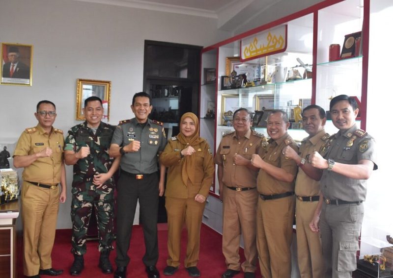 Walikota Bandarlampung, Eva Dwiana menerima kunjungan kerja Komandan Korem 043/Gatam Brigjen TNI Rikas Hidayatullah, di kantor Walikota, pada Senin (20/5/2024).