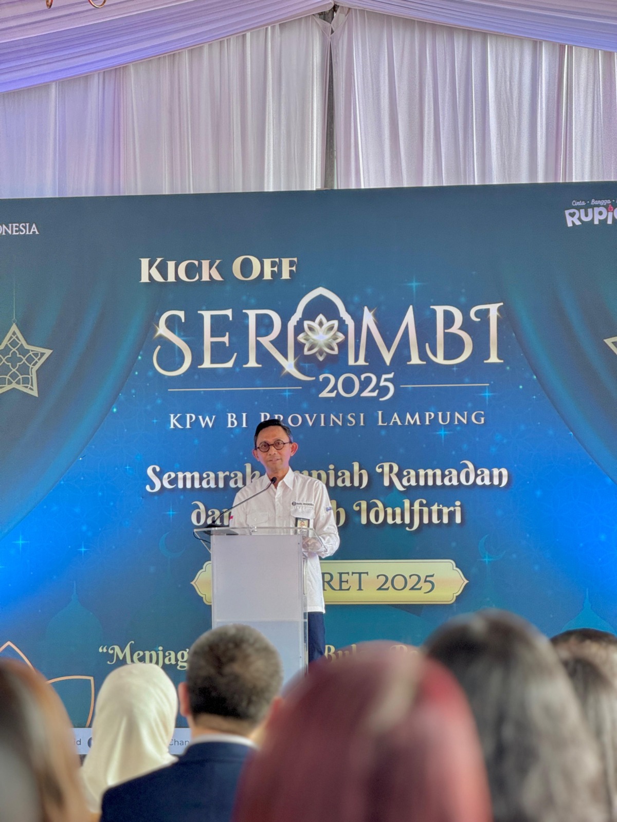 Seluruh rangkaian kegiatan penukaran uang pada momen Ramadan dan Idulfitri dikemas dalam kegiatan Semarak Rupiah Ramadan dan Berkah Idulfitri (SERAMBI) 2025 yang bertema “Menjaga Rupiah di Bulan Penuh Berkah”. Hal ini merupakan wujud komitmen Bank Indonesia (BI) untuk menjaga ketersediaan uang Rupiah di masyarakat selama Ramadan dan Idulfitri 2025.