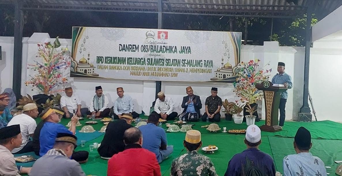 Malang, (Kamis, 11/09/2025 – Kediaman Danrem 083/Baladhika Jaya, Kolonel Inf Kohir, menjadi tempat berlangsungnya acara penuh makna, yakni Silaturahmi Danrem bersama Keluarga Besar KKSS Malang Raya dalam rangka Maulid Nabi Muhammad SAW dan doa bersama untuk Indonesia damai.