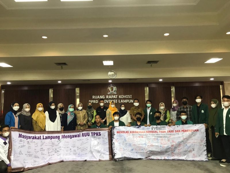 "Program Vaksinasi Pemkot Bandar Lampung, Koramil 410-01/Panjang Konsisten Dukung"Bandarlampung — Dampak dari Rancangan Undang-Undang tentang Tindak Pidana Kekerasan Seksual (RUU TPKS) batal masuk ke rapat paripurna Dewan Perwakilan Rakyat Republik Indonesia (DPR RI) beberapa waktu lalu, mengundang kekecewaan dari elemen dan lembaga yang bergerak di bidang perlindungan perempuan dan anak di Provinsi Lampung. Akibatnya mendorong Aliansi yang tergabung dari Rumah Perempuan dan Anak (RPA) Provinsi Lampung, Partisipasi Publik untuk Kesejahteraan Perempuan dan Anak (PUSPA) Lampung serta teman-teman mahasiswa dari UIN Raden Intan Lampung…